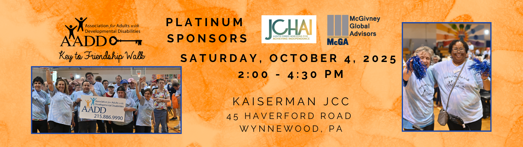 I’m thrilled to announce that this year’s Key to Friendship Walk—AADD’s biggest FUNdraiser of the year—will take place on October 4, 2025. Once again, we’ll gather at the Kaiserman JCC in Wynnewood, PA, from 2:00 to 4:30 PM for a fun and inspiring afternoon full of community spirit and connection.